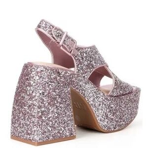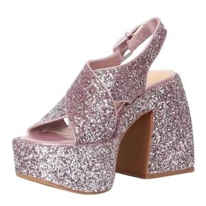 From GB, the Friday-Nite Glitter Platform Dress Sandals feature: