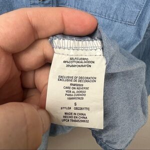 GB Gianni Bini Split Back Chambray Tunic with interior, mid back, smocked band