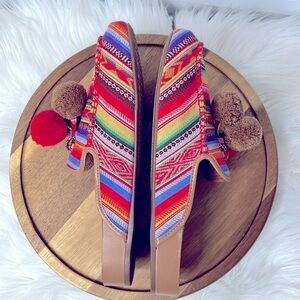 GB, Gianni Bini, Aztec, Multicolor, Pom Pom, Mule, Sliders, Slip On, Colorful, Size 9.5, Bright, Summer, Fun, Unique, Vacation, Mexico, Latino, Casual