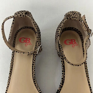 GB Gianni Bini Girls | Heeled Ankle Strap Sandal Open Toe Cheetah Print size 3 Brown and Black spots