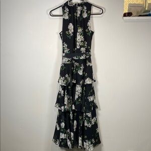 Wedding guest cocktail semi formal summer flowers orchids flowy ruffles delicate feminine elegant classic black and white floral sundress sun dress Prom dress, formal, summer, flowy, light, corset, wedding guest, cocktail, polished, upscale, minimalist chic, nature-inspired, soft, feminine, delicate, feminine, floral, vintage-inspired, ethereal, elegant, whimsical, dreamy, light, airy, draped, effortless, romantic, breezy