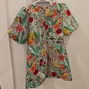 Leafy pattern dress with green and brown tones. Stylish and unique design.