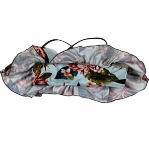 Hawaiian flounce bandeau bikini top by Giani Bini. Ruffle with crisscross straps. Blue/Floral Bikini Top. Top Only. Size GIRLS 10. Due to light & screen variations, colors may vary slightly from the images