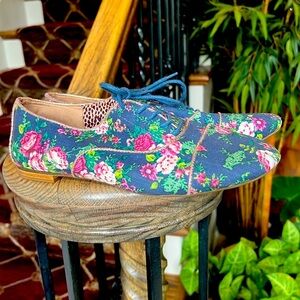 GB Girls fabric floral shoe flats lace up size 8 good condition