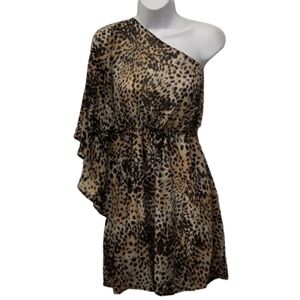 GB Leopard Print One Shoulder Flowy Mini Dress