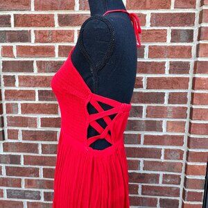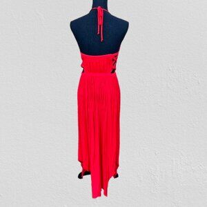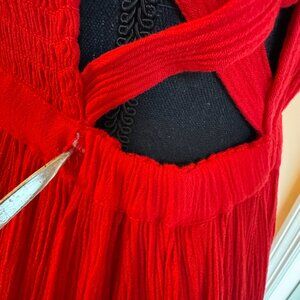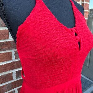 GB Maxi Sun Dress Large Red Smocked Top Cut-Outs Long Side Slits Beachy