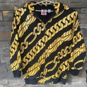 GB Men’s Gold Chain Link Hoodie Sweatshirt Full Zip Vintage 2XL