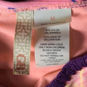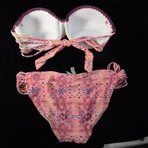 GB Pink Aztec Print Bandeau Bikini Swimsuit Side Skimpy Straps Crochet Edge Sz M