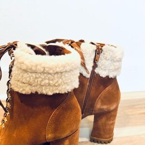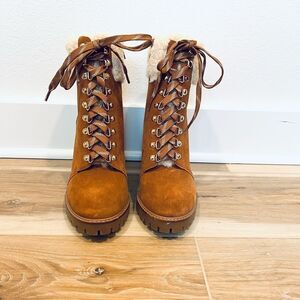 GB SIGHT-SEE Suede Shearling Lug Sole Hiker Platform Booties Size 6