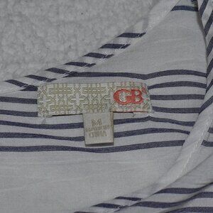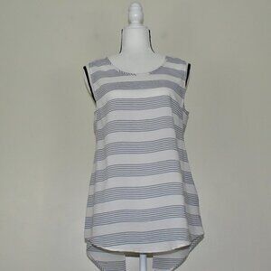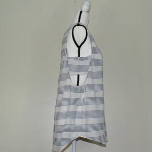 GB Gianni Bini Semi Sheer Sleeveless Blouse Pullover Coverup Top White Blue Stripe Size M