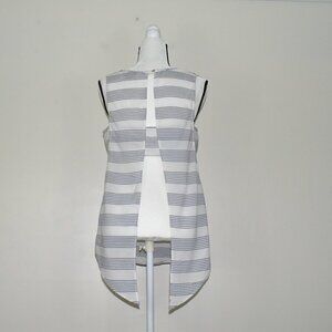 GB Semi Sheer Sleeveless Open Back Coverup Tank Top White Blue Stripe Size M