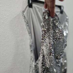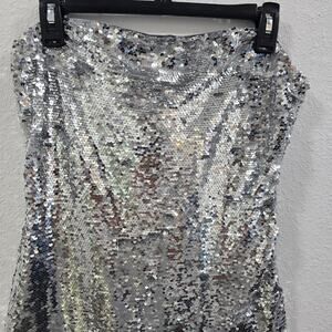 GB Silver Sequin Strapless Bodycon Mini Dress Size L Party Club Night Out Glam