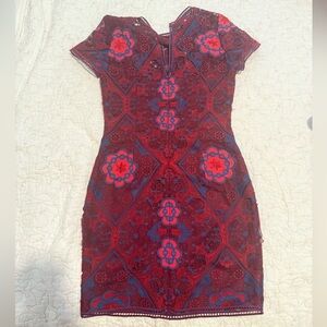 GB red embroidered dress