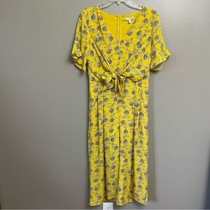 GB women’s size Medium Yellow Blue Floral Summer Jumpsuit Romper lined bow