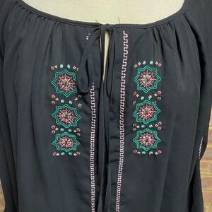 GB Black Sheer Embroidery Tie Front Blouse