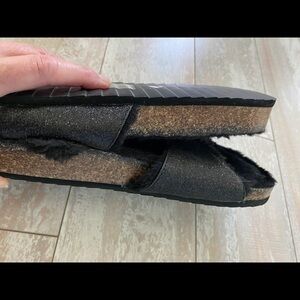 GBG Black Metallic Slides w/ Faux Suede & Fur Size 7.5