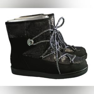 GBG GUESS Womens Black Logo Sparkle Lace up Detail Insulated Boots Size 10M