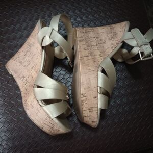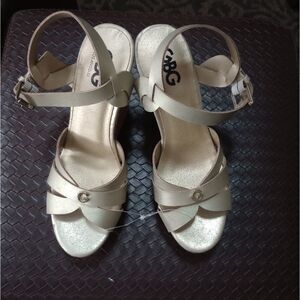 GBG GGDAYVA golf Strappy Sandals with cork wedge heels. Rubber soles. "G" metal logo in the middle of toe strap.