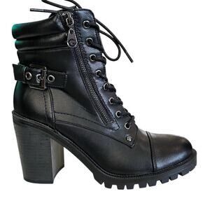 GBG Guess Women's Jayden Black Combat Boots Size 8.5 Ankle Chunky Heel