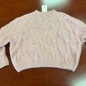 GB Pink & Lilac Fisherman Acrylic & Wool Feminine Cable Knit Sweater sz L NWT