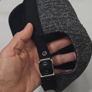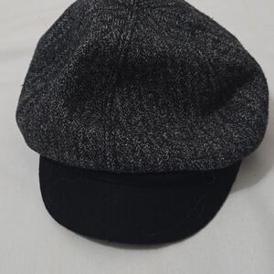 Chic newsboy cap in gray and black. Perfect for adding a touch of style to any outfit. Great pre-owned condition.