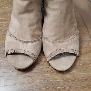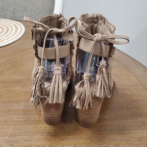 G.C. Boho Polka Open Toe, Fringe Laced Chunky Heel, Size 10, Perfect condition