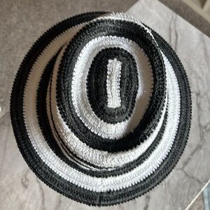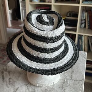 Stylish black and white striped hat. Perfect for any occasion. Viscose and polyamide straw like feel. Gorgeous stylish made in Italy