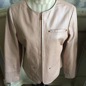 Neiman Marcus Exclusive Rose Leather Zip Jacket! Gorgeous w tags never worn out. Rose gold zipper and stud detail. Two front pockets with cuff details.
