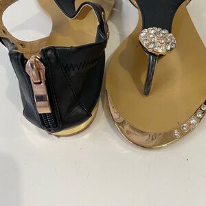 GC Shoes Black Jeweled Sandals Gold Zippered Back size 6.5 Euro 37
