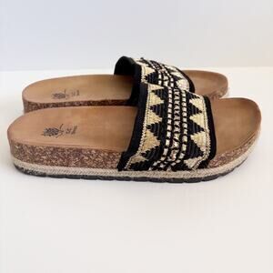 GC Shoes Good Company Sz 9 (40) Tribal Black and Gold Slide Sandals Cork Hemp