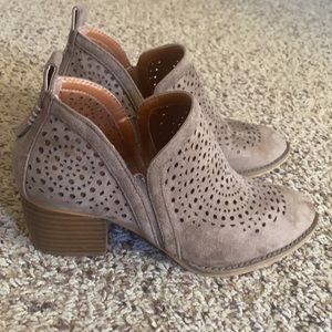 G.C. Shoes Suede Brown Cut Out Pattern Ankle Boots
