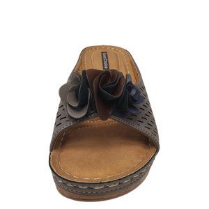 Take your look to the next level with these GC shoe wedges. From the ruffled floral applique to the peep toe, the Juliet sandal is layered with feminine details.