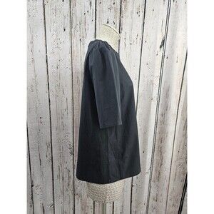 GC Women's Large Marella Black Cotton Blend Button Black Short Sleeve Blouse Top