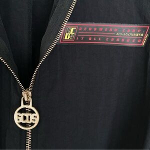 Front zipper and snap button closure.