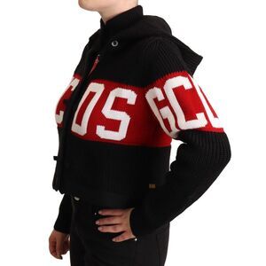 GCDS Black Cashmere Hooded Button Down Logo Cardigan Women's Jacket