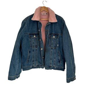 GCDS Faux Shearling Collar Denim Jacket Size XL