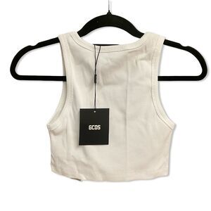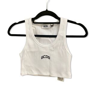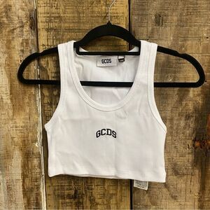 GCDS White Ribbed Crop Top logo tank tee Revolve street wear brand FWRD NWT L