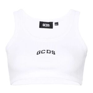 Chic white ribbed crop top featuring the GCDS logo. Ideal for casual outings.