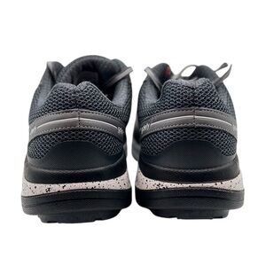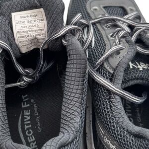 Comfortable gray and black athletic shoes with a modern design. Ideal for active lifestyles. Walking. Orthotics. Comfortable. Everyday wear. Versoshock Trampoline Technology.