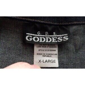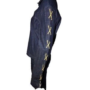 GDS Goddess Denim Jean Button Up Blouse Shirt Laced Up Sleeves Vintage Size XL