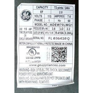 Came off a unit with the Model# ADEW70LWQ1 (72 pints)