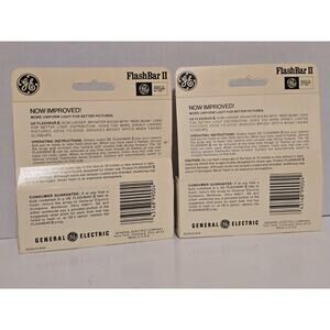 The GE Flash Bar II Bulbs are new old stock (NOS) lot of 2 designed specifically for the Polaroid SX-70 vintage camera. These flash bulbs are a rare and valuable find for collectors or enthusiasts looking to restore or enhance the functionality of their vintage camera. The GE Flash Bar II Bulbs offer a unique and authentic touch to the overall aesthetic and performance of the camera, making them a sought-after accessory for polaroid enthusiasts and collectors alike.