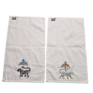 GE LIVING Embroidered Circus Animals Leopard and Tiger Decorative Hand Towels