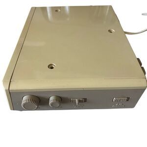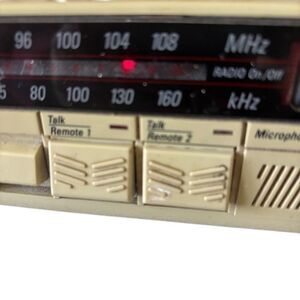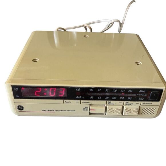 GE Spacemaker Clock Radio Intercom Model 7-4295A. Clock and radio both work well. Intercom lights up but I have no way to test it. One of the cord wrap a rounds in back is cracked.