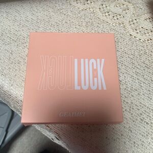 Chic peach box featuring a 'Luck' design. Ideal for gifting or storage.