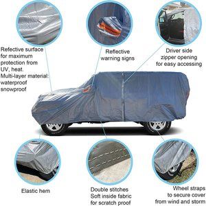 [ HEAVY DUTY DURABLE FABRIC ]: Triple layers for maximum protection against rain, snow and wind. Reflective surface to reflect UV and Sunlight.