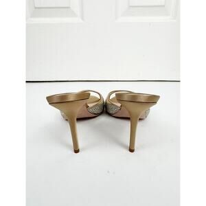 Description: Open toe. Slip on. Rhinestone embellishment. Mesh detailing. 3.14" stiletto heel. Mesh upper, unlined, leather sole. Made in Italy.