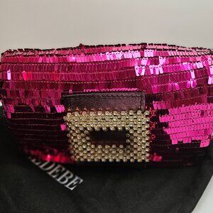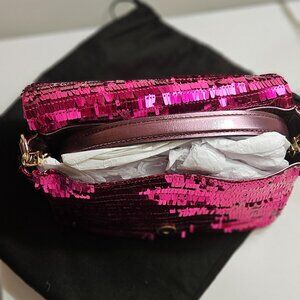 Never used Blingy fushia sequin and jeweled handbag! Not for the faint at heart...this bag is bold, beautiful and stylish! Can be worn dressed up or down. Comes with removable crossbody chain and leather shoulder strap. Roomy enough to hold essentials. Dimensions 9x2Wx5D