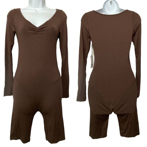 GEEL Ghauri One Piece Romper Bike Shorts Long Sleeves Soft Base NWT Brown M 28-2