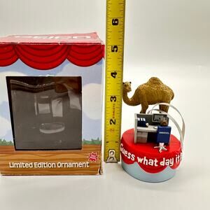 GEICO- GUESS WHAT DAY IT IS?- LIMITED EDITION- 2013 ORNAMENT- WITH SOUND. New Battery in the ornament, in WORKING condition with sound effect, "Woo hoo! Hump Dayyy!". Box shows some wear (as pictured), but ornament in good condition. Limited Edition #1534 of 5100.